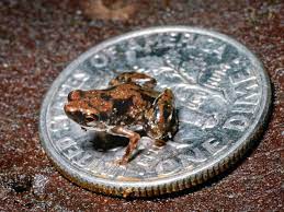 | The Paedophryne is the worlds tiniest frog at the average size of it being only 7mm and weighing .ooo3 ounces, it is really small! It lives in Papua New Guinea. It was only just recently discovered by U.S researchers in 2012> |